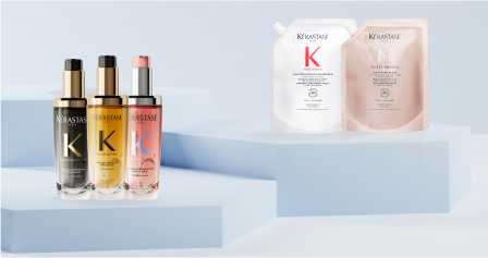 Découvrez les différentes catégories de Kérastase : des recharges durables et formats voyage pratiques aux puissants produits backbar,